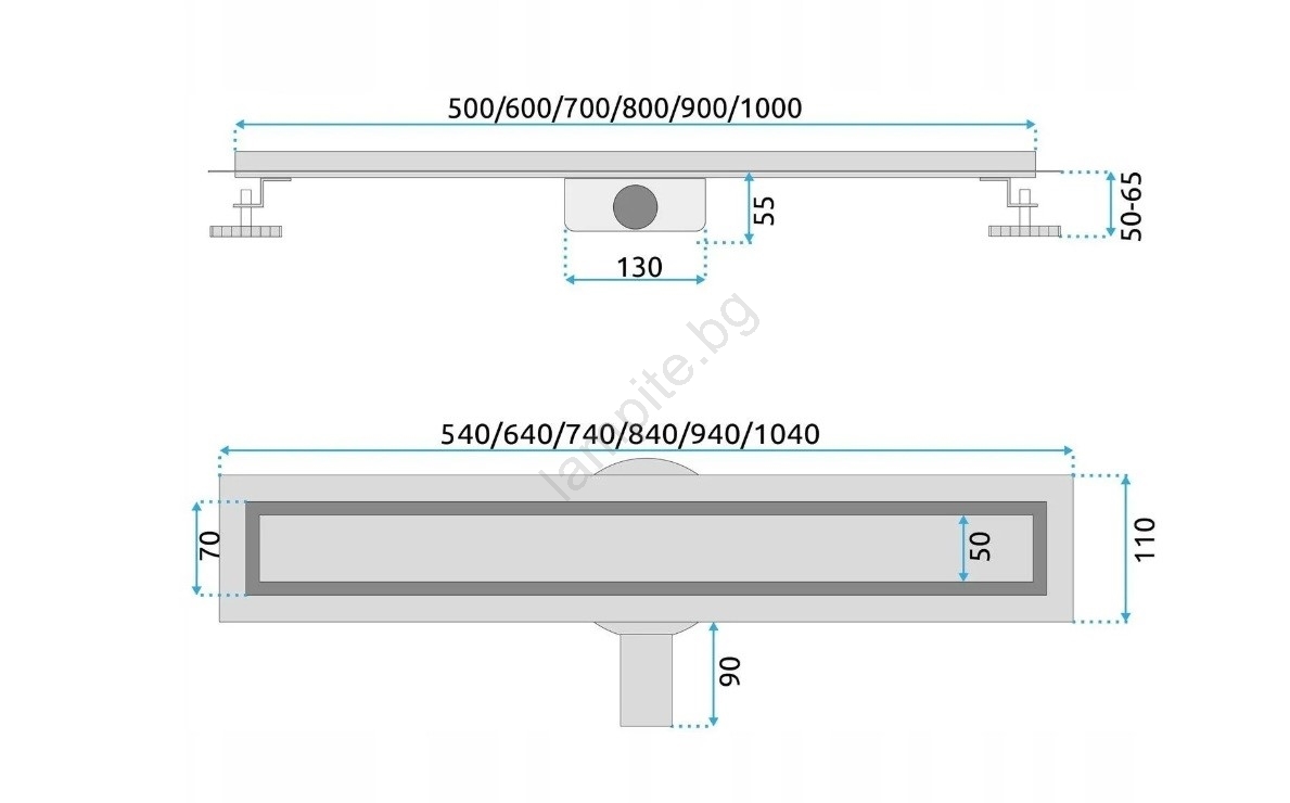• Благодарение на регулируемите по височина крачета (50–65 мм) сифонът лесно се адаптира към различни подови условия.
