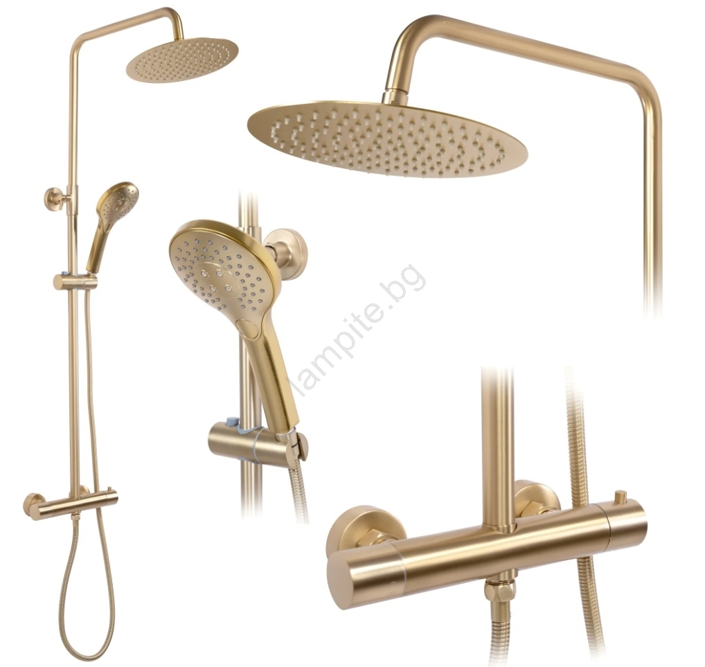 REA-P6602 - Душ комплект с термостатен смесител VINCENT, четкано златно покритие