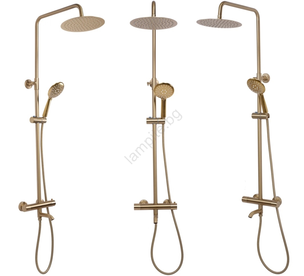REA-P6604 - Комплект за душ с термостатен смесител LUNGO, четкано злато