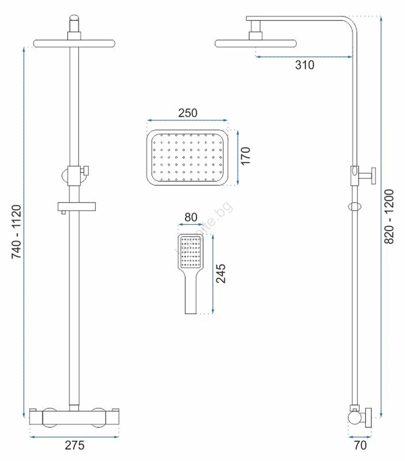 • Настройка на душ-щангата: 82 - 120 cm.