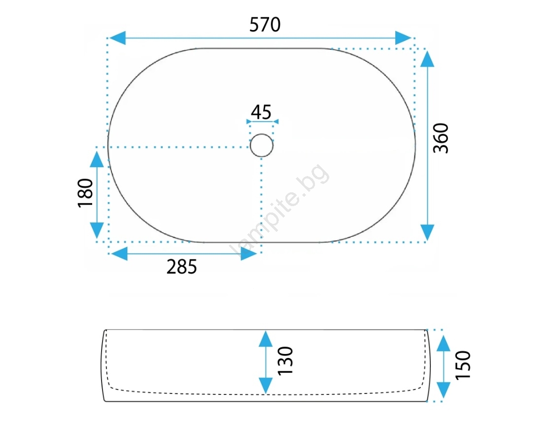 REA-U0600 - Мивка за плот ALMA 36x57 см, керамична, гланцово бяла