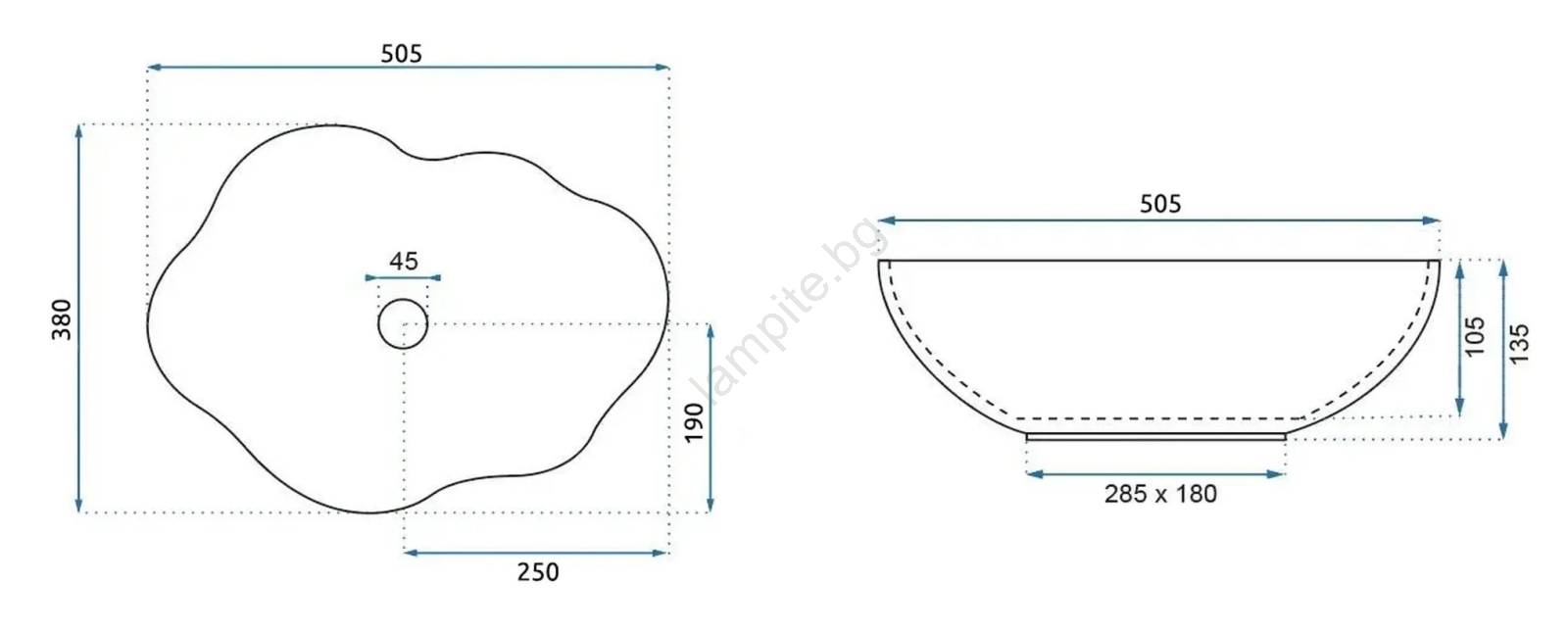 • Смесителят за мивка и изпускателната арматура не са включени в комплекта.