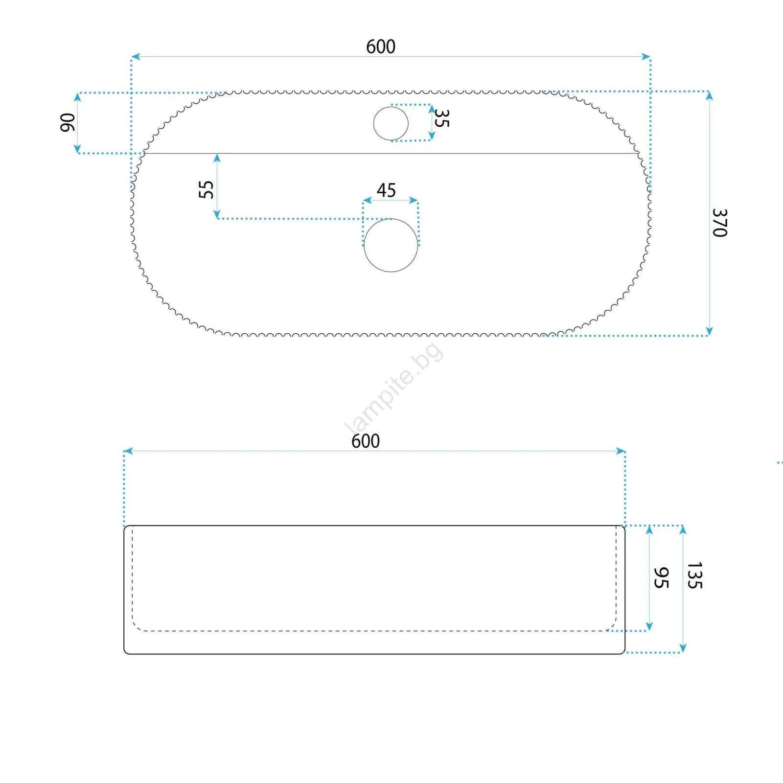 • Умивалникът е изработен от висококачествена санитарна керамика.