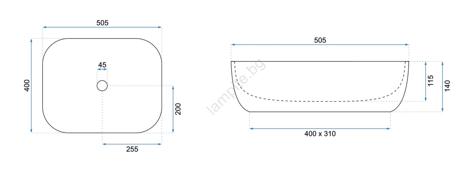 REA-U6300 - Мивка за плот MONA SLIM 40x50,5 cm керамика/бял гланц