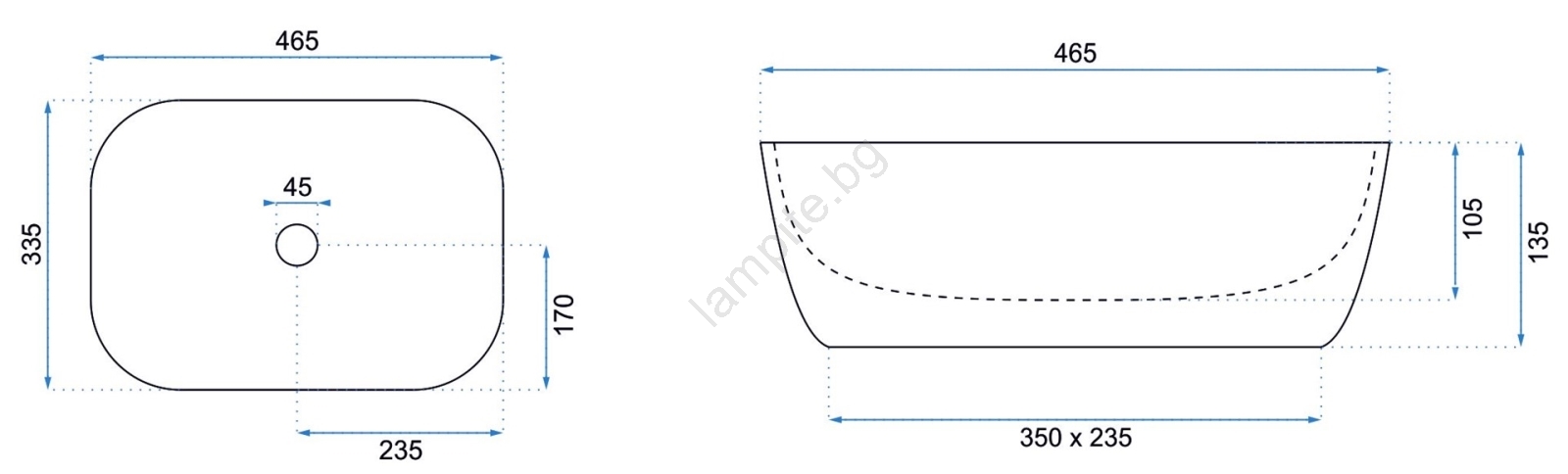 • Смесителят за мивка и изпускателят не са включени в комплекта.