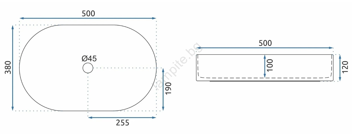 REA-U6563 - Мивка за плот NADIA 38x50 см керамика/бял гланц