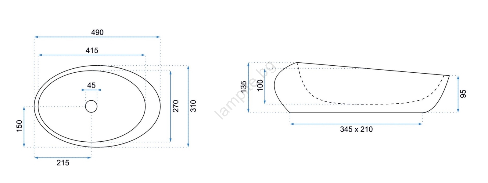 REA-U6650 - Умивалник за плот ROXY 31x49 см керамика/сива/мраморен декор