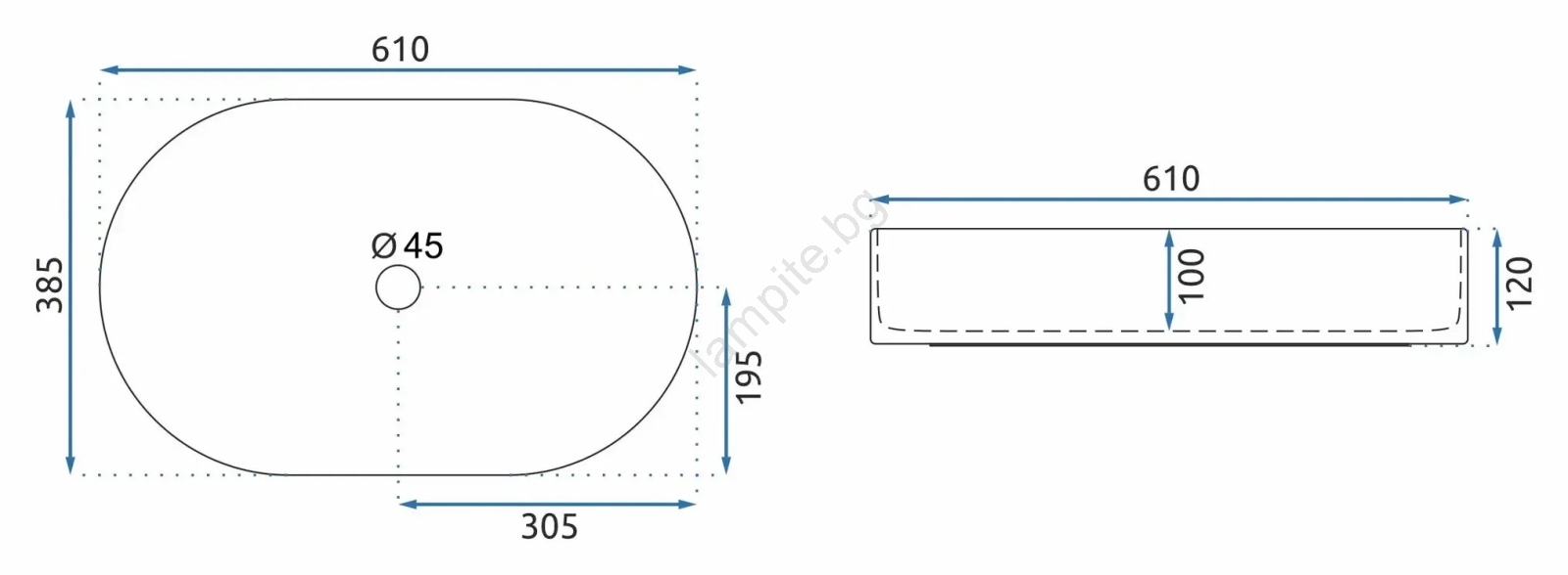 • Умивалникът е изработен от висококачествена санитарна керамика.