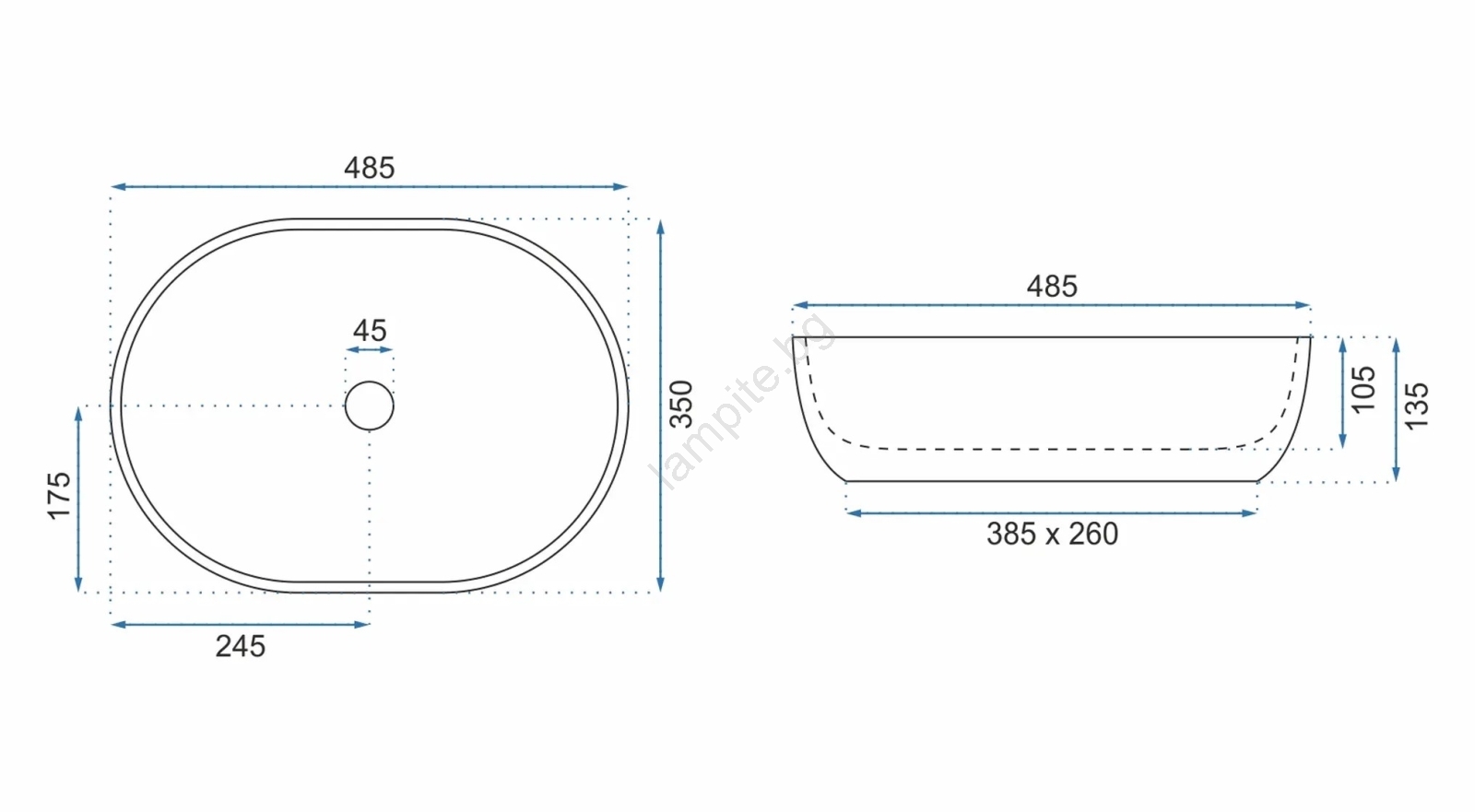 • Без отвор за смесител – смесителят се закупува отделно.