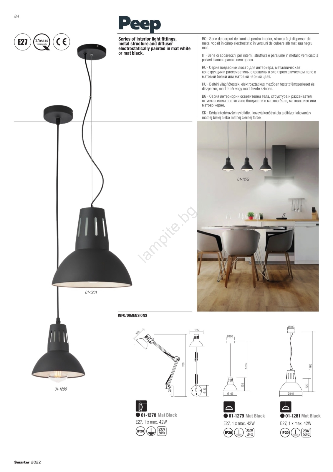 Redo 01-1281 - Полилей на кабел PEEP 1xE27/42W/230V Ø 34,5 cm черен се отличава с приятен и функционален дизайн.  Подходяща е крушка с цокъл E27. Тук можете да закупите и други крушки на изгодни цени. Ще имате интересно допълнение към дома си.