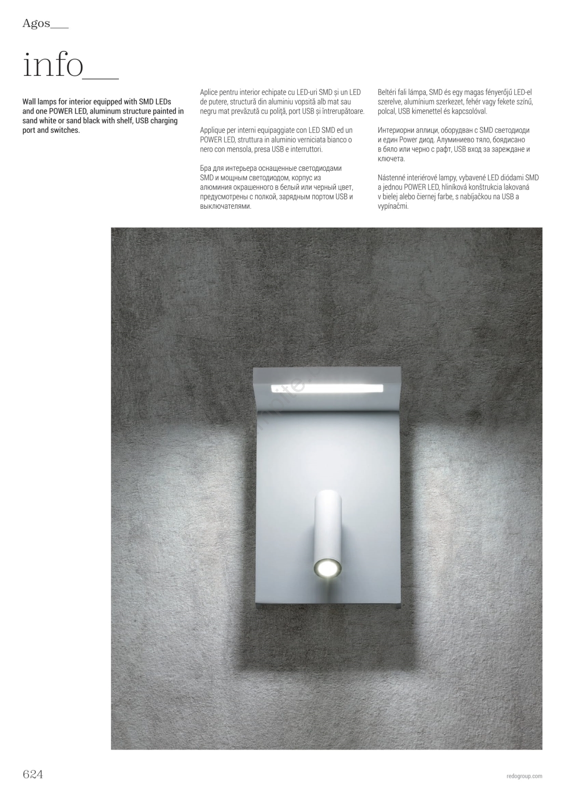 • Redo 01-1499 - LED Стенен спот AGOS LED/6W/230V + LED/3,2W USB бял