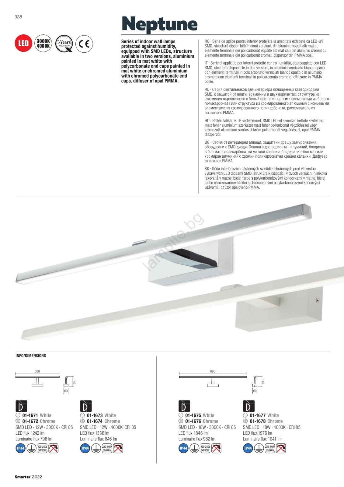 • Redo 01-1671 - LED осветление за огледало NEPTUNE, 12W, 230V, 60 см, IP44, бяло