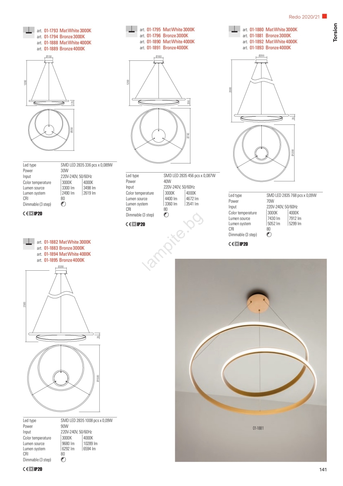 • Redo 01-1796 - LED полилей на кабел TORSION LED/40W/230V Ø 74 см бронзов