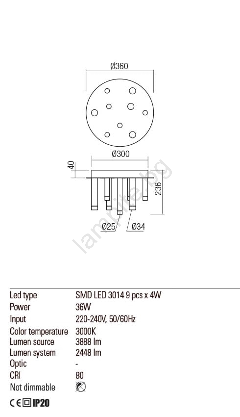 • Redo 01-2040 - LED Плафониера MADISON 9xLED/4W/230V меден