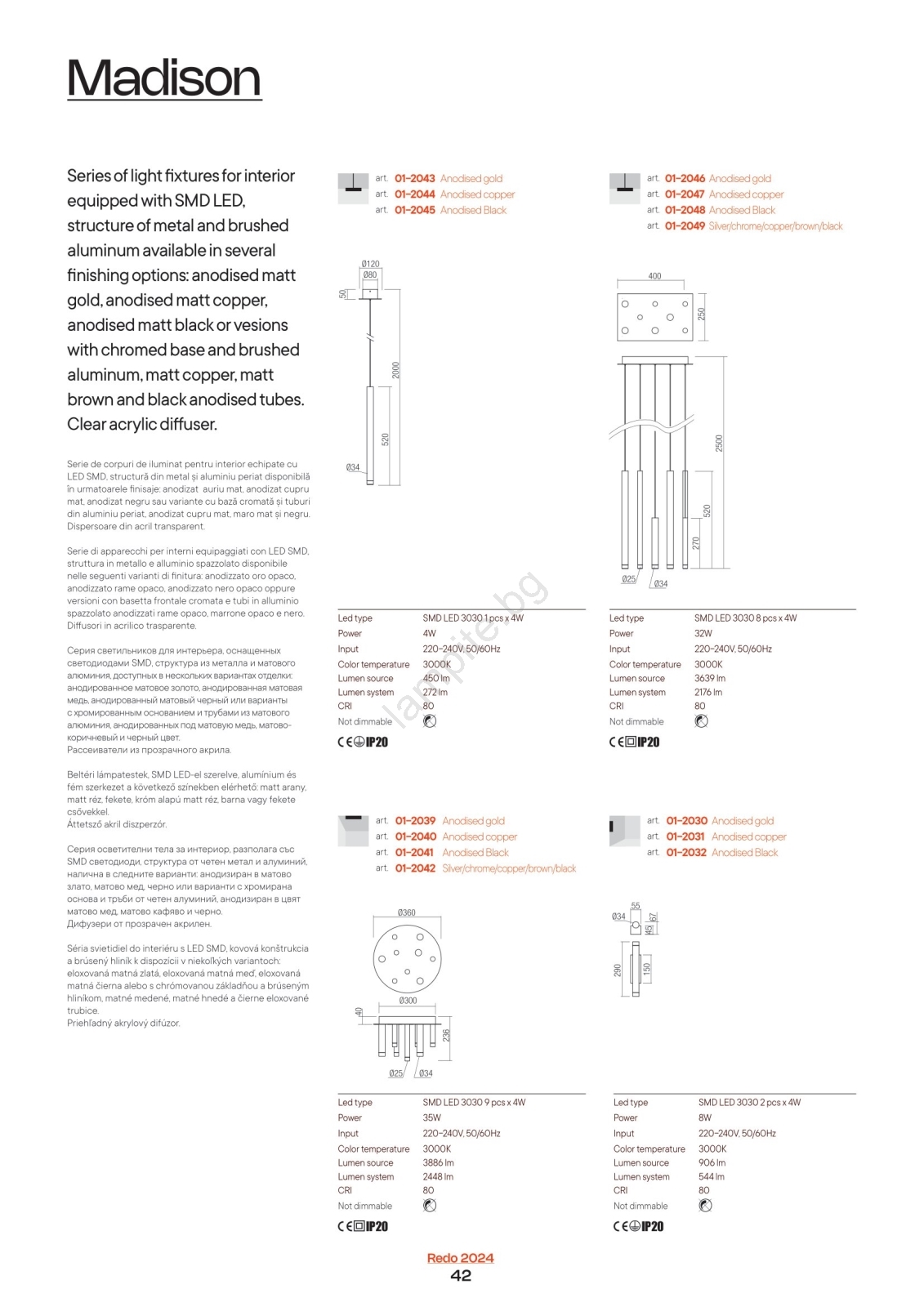• Redo 01-2050 - LED Пендел MADISON 8xLED/4W/230V златист