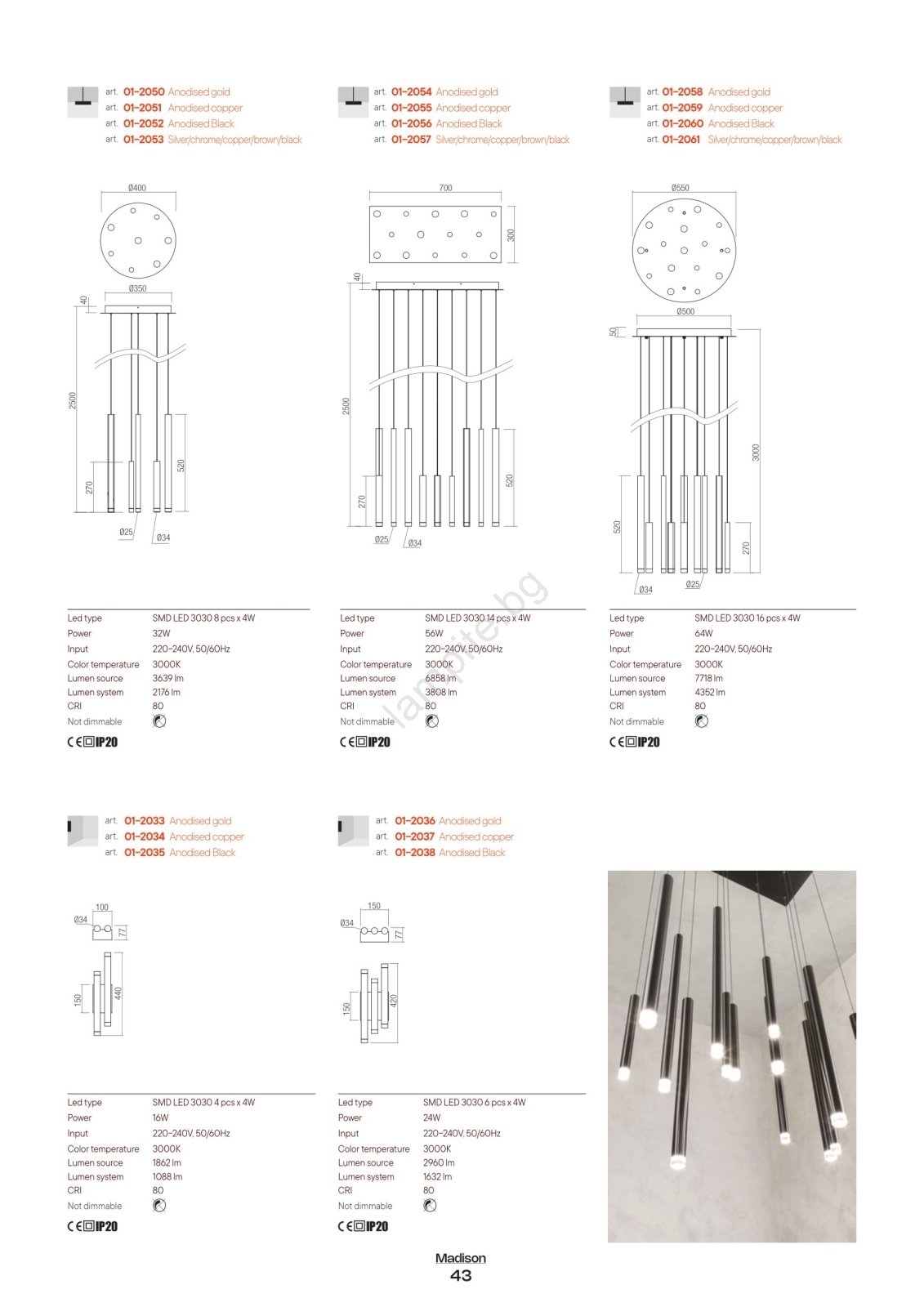 • Redo 01-2053 - LED Пендел MADISON 8xLED/4W/230V лъскав хром/черен/меден