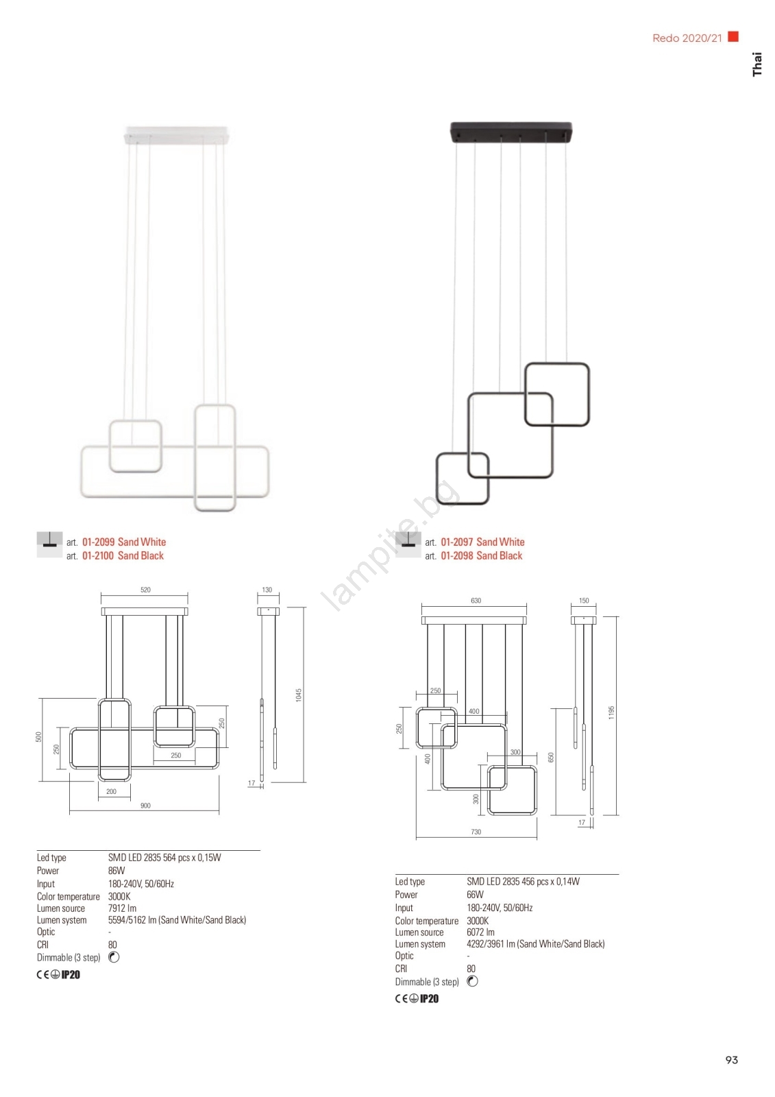 • Redo 01-2097 - LED Димируем пендел THAI LED/66W/230V 3000K бял