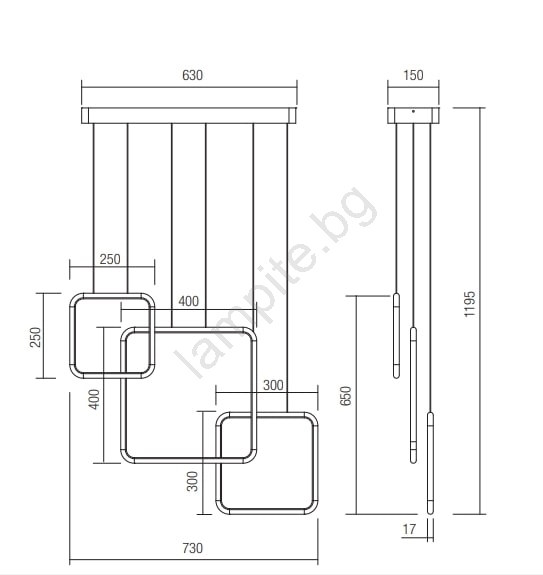 Redo 01-2098 - LED Димируем пендел THAI LED/66W/230V 3000K черен