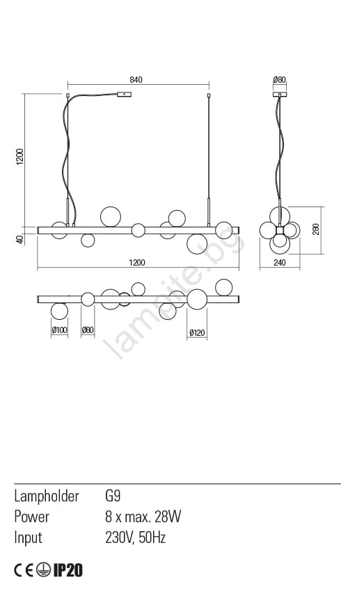 Redo 01-2377 - Пендел GOJI 8xG9/28W/230V черен