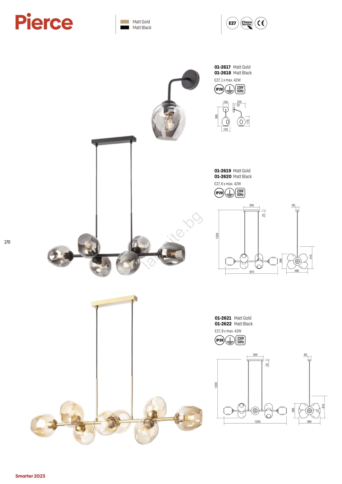 • Redo 01-2619 - Пендел PIERCE 6xE27/42W/230V златист/опушен