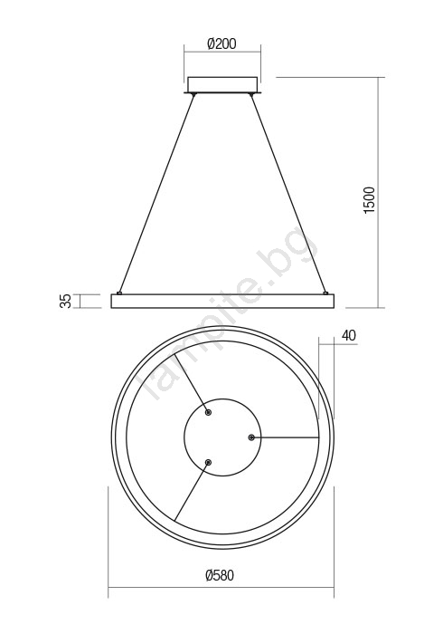 • Redo 01-2674- LED Димируем пендел ICONIC LED/50W/230V Ø 58 см черен