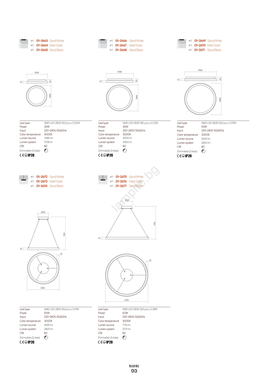 • Redo 01-2676 - LED Димируем пендел ICONIC LED/60W/230V Ø 78 см златист