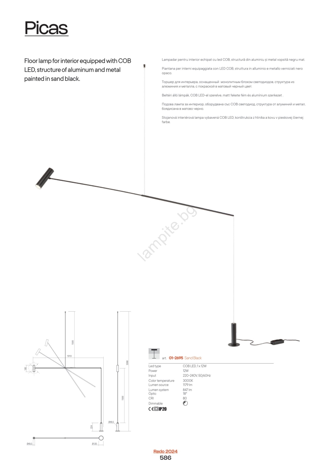 Redo 01-2695 - LED Димируем лампион PICAS LED/12W/230V черен
