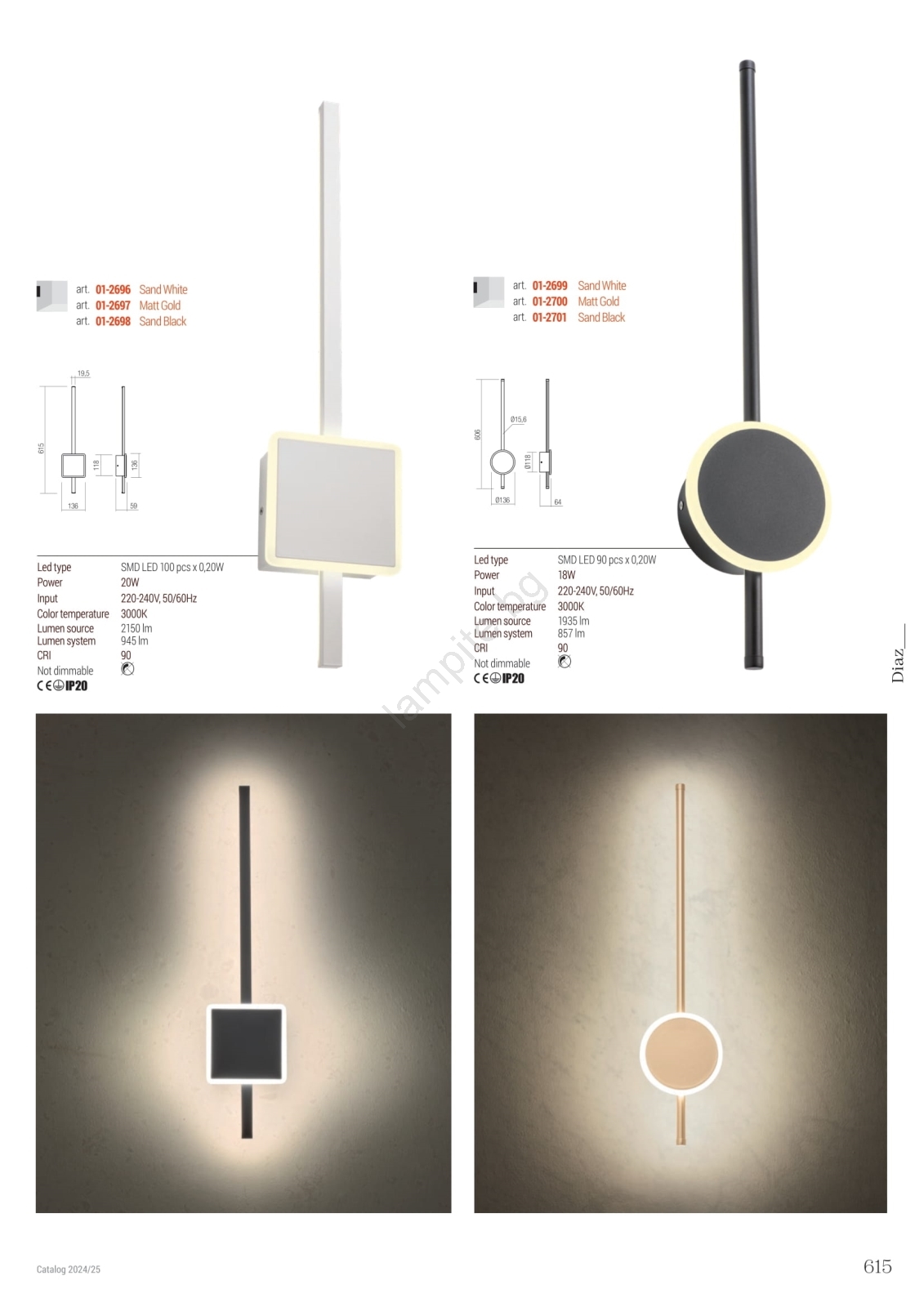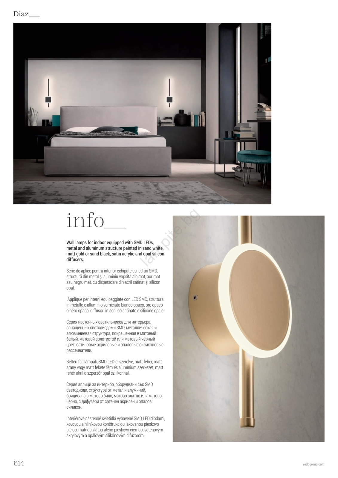 • Redo 01-2700 - LED аплик DIAZ LED/18W/230V CRI 90 златист