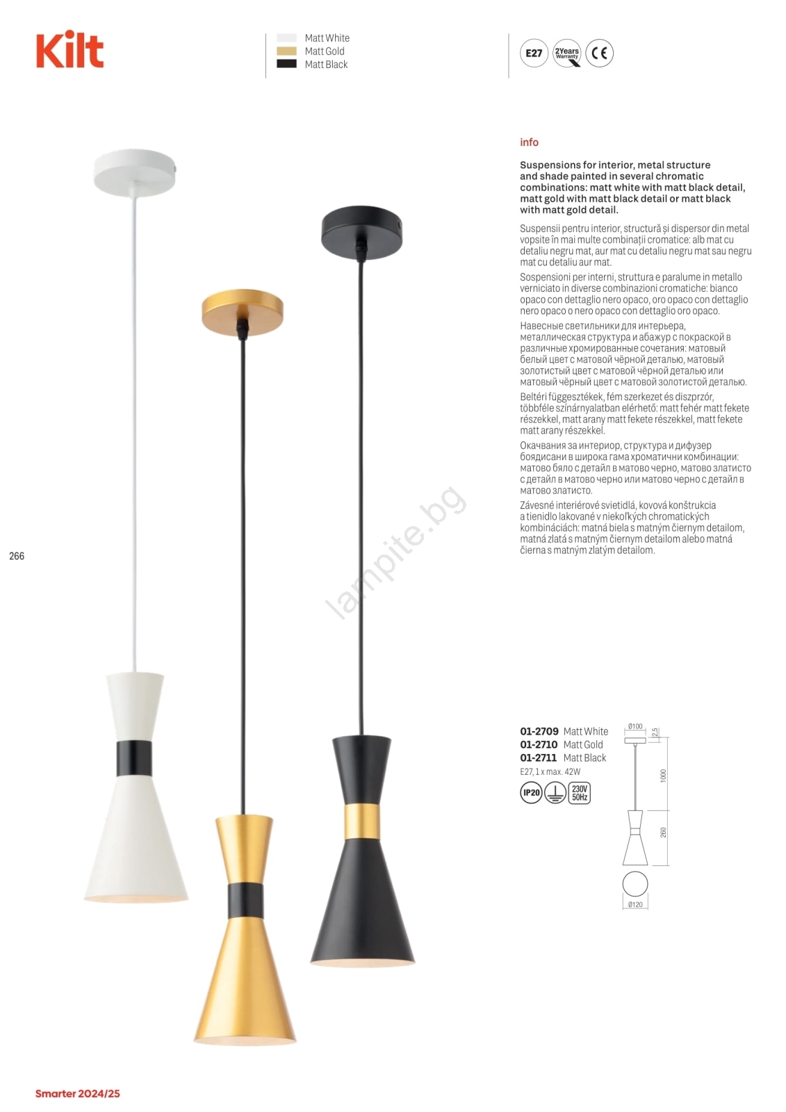 • Redo 01-2710 - Пендел KILT 1xE27/42W/230V Ø 12 см златист