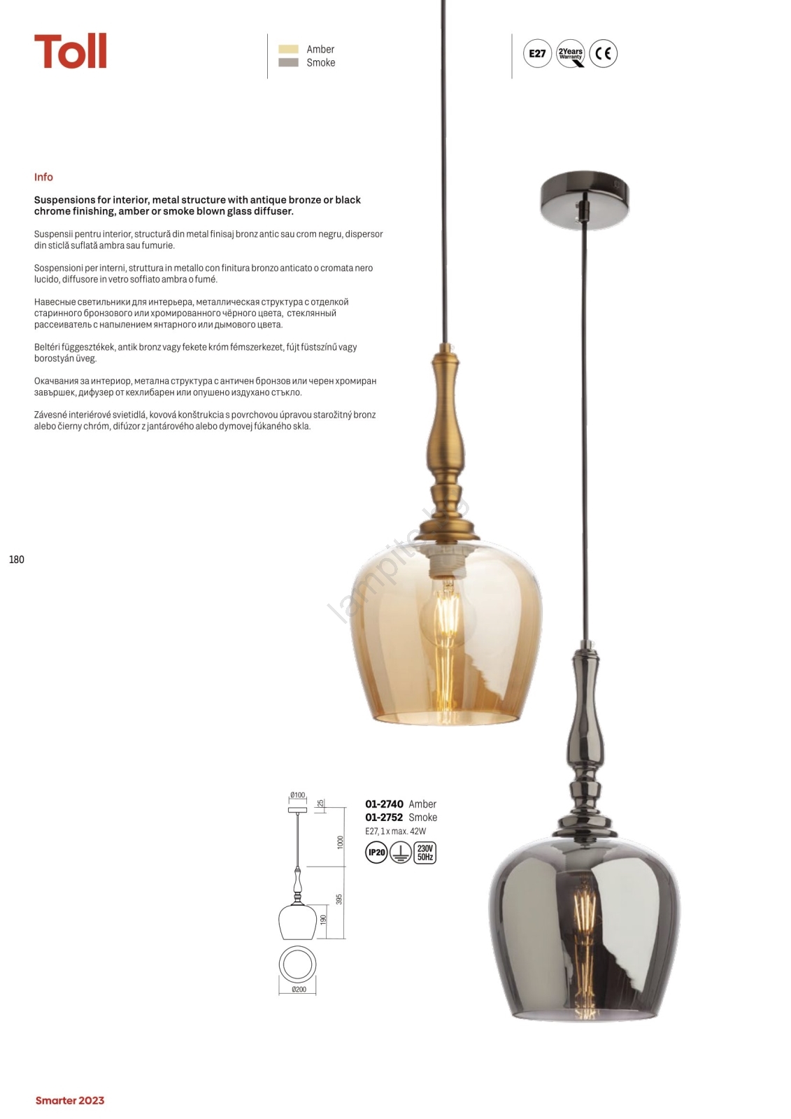 • Redo 01-2740 - Пендел TOLL 1xE27/42W/230V бронзов