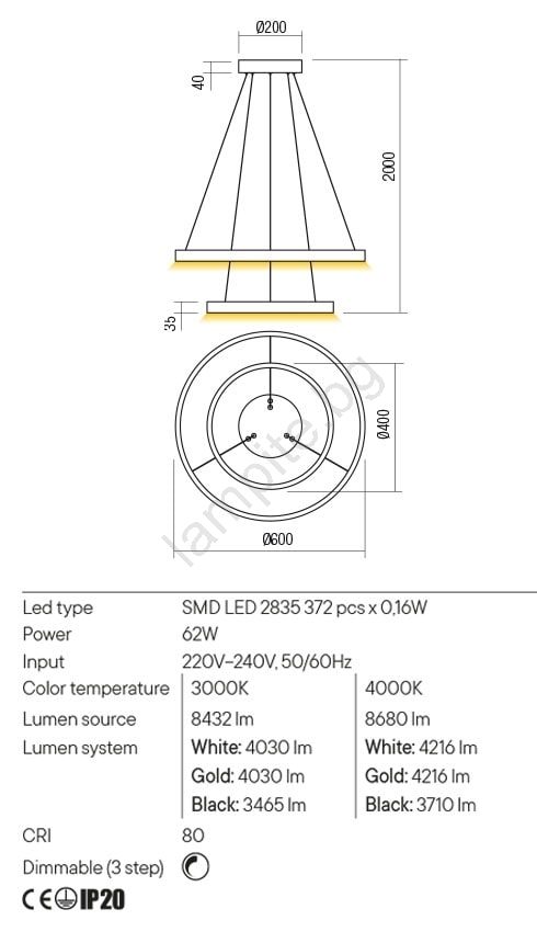 • Redo 01-2889 - LED Димируем пендел FEBE LED/62W/230V златист