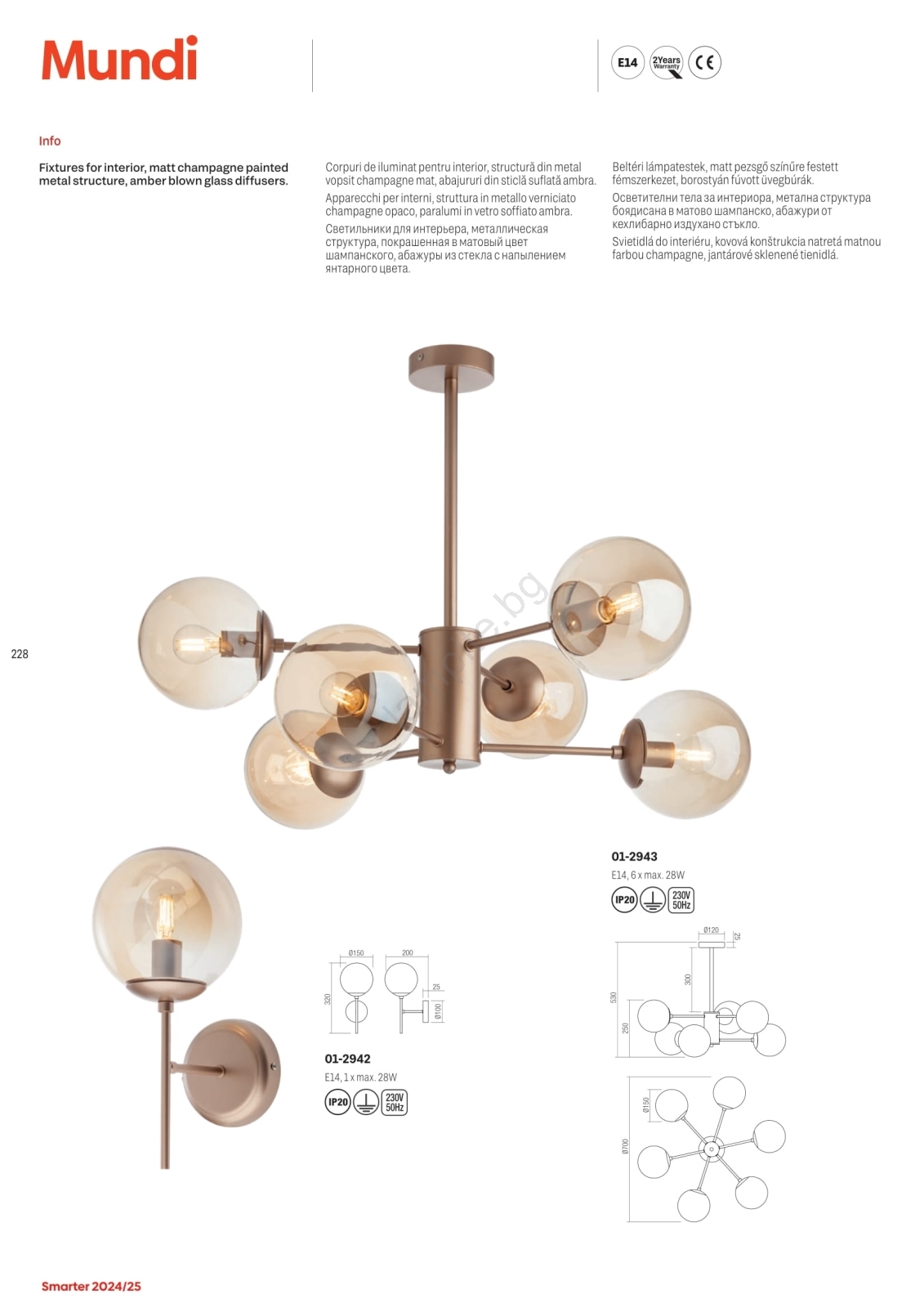 Redo 01-2942 - Настенна лампа MUNDI 1xE14/28W/230V медна/опушена се отличава с приятен и функционален дизайн.  Подходяща е крушка с цокъл E14. Тук можете да закупите и други крушки на изгодни цени. Ще имате интересно допълнение към дома си.