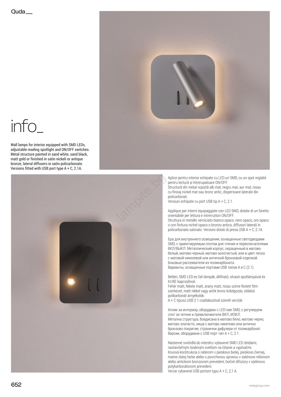 • Redo 01-1491 - LED стенено осветително тяло QUDA LED/6W/230V + LED/3W CRI 90 бяло