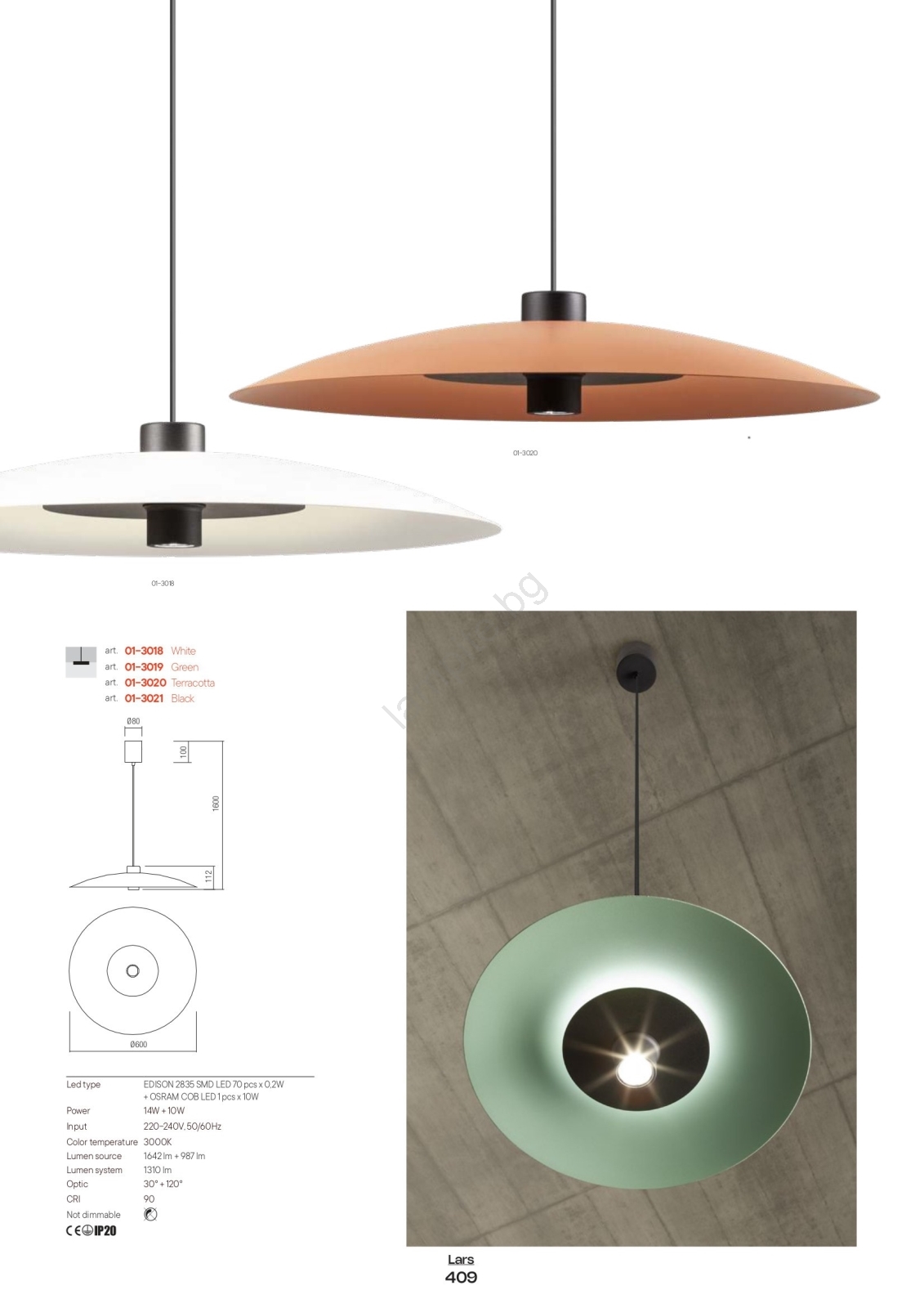 • Redo 01-3020 - LED полилей LARS на кабел, LED/14W/230V + LED/10W, диам. 60 см, CRI 90, оранжев