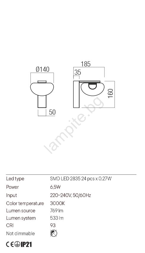 • Част от лампата е вграден икономичен LED източник.