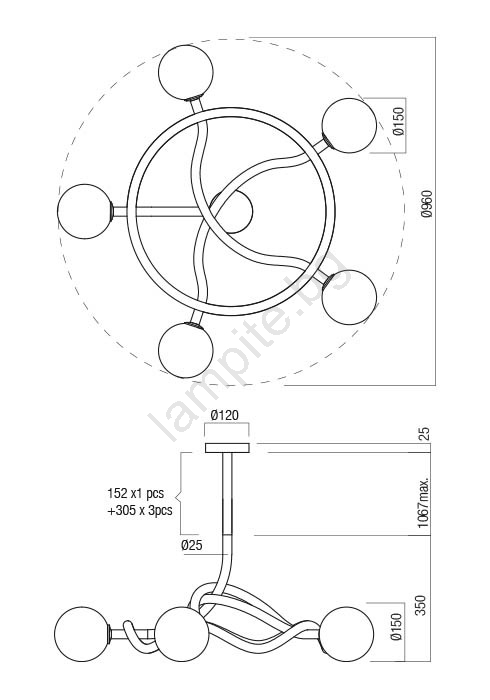 • Redo 01-3259 - Полилей на тръба CONFUSIO 5xE14/28W/230V Ø 96 см черен