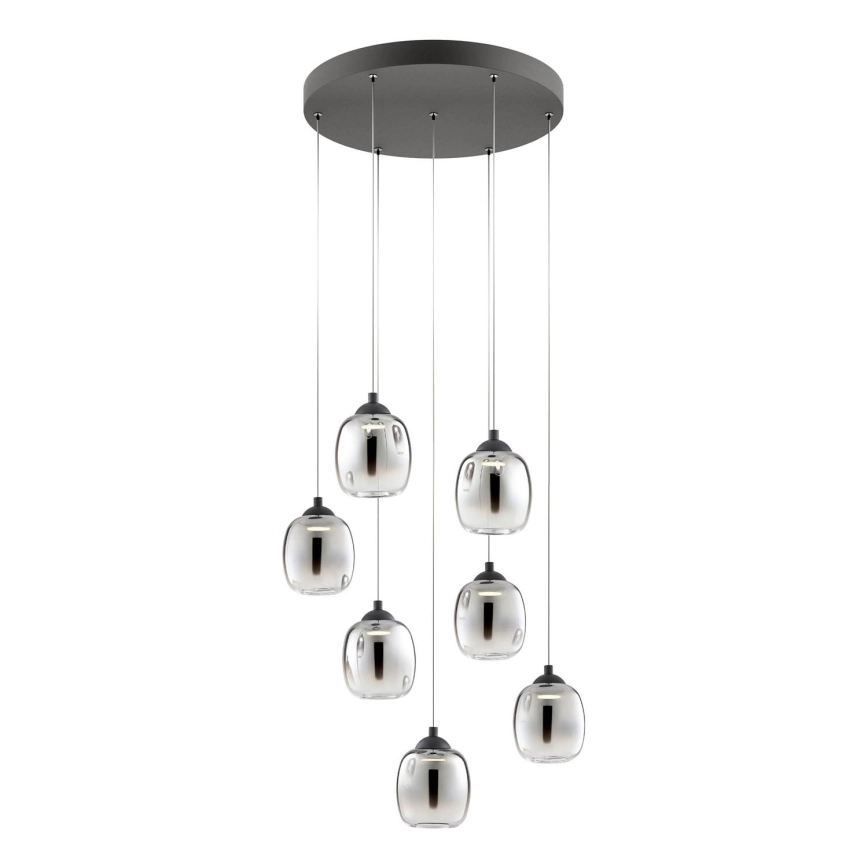 Redo 01-3489 - LED полилей с възможност за димиране на кабел KHADI 7xLED/5W/230V CRI 90 Ø 52 см черно/димчато