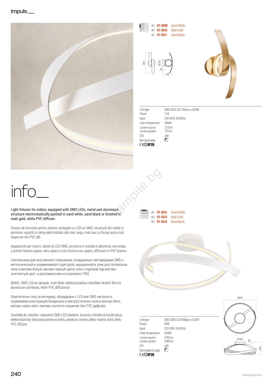 • Redo 01-3613 - Димируема LED таванна лампа IMPULS LED/34W/230V Ø 60 см златна