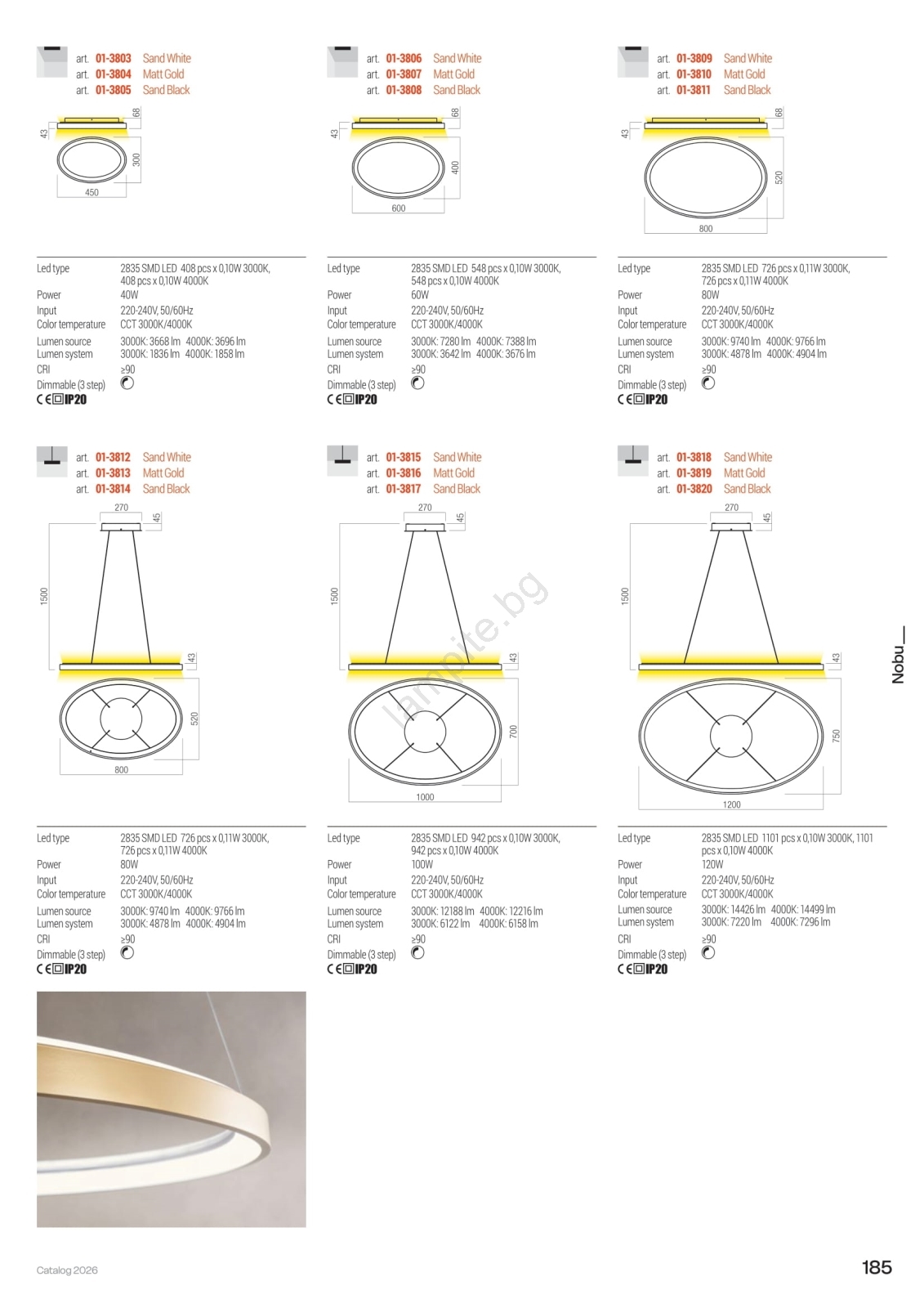 • Redo 01-3810 - Димируем LED таванен плафон NOBU LED/80W/230V 3000/4000K CRI 90 златист