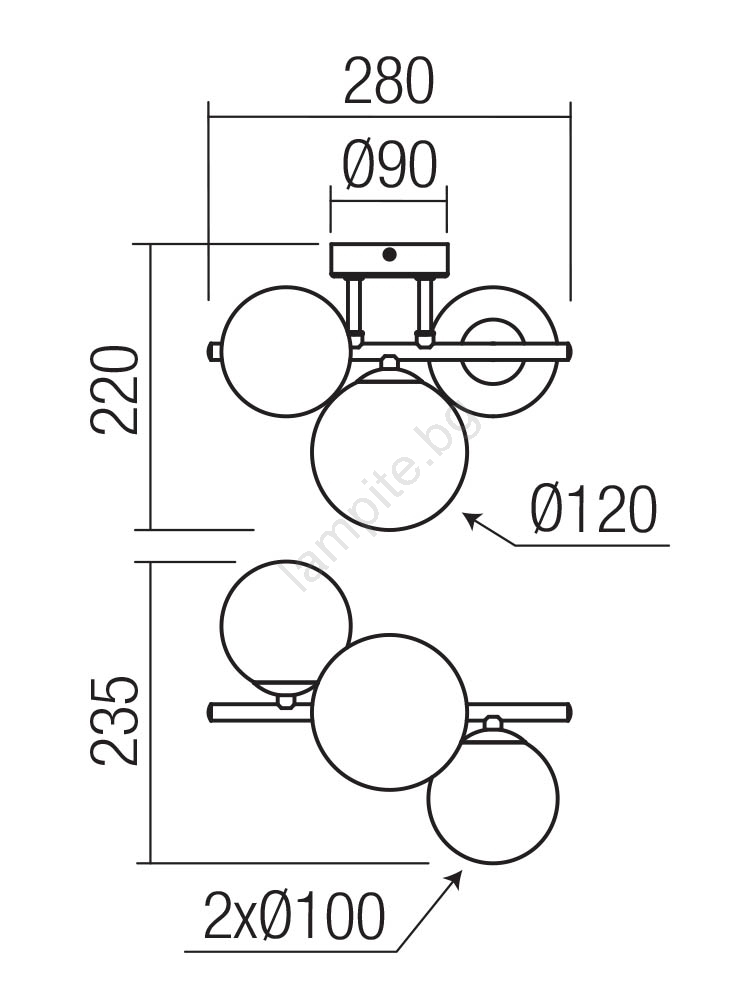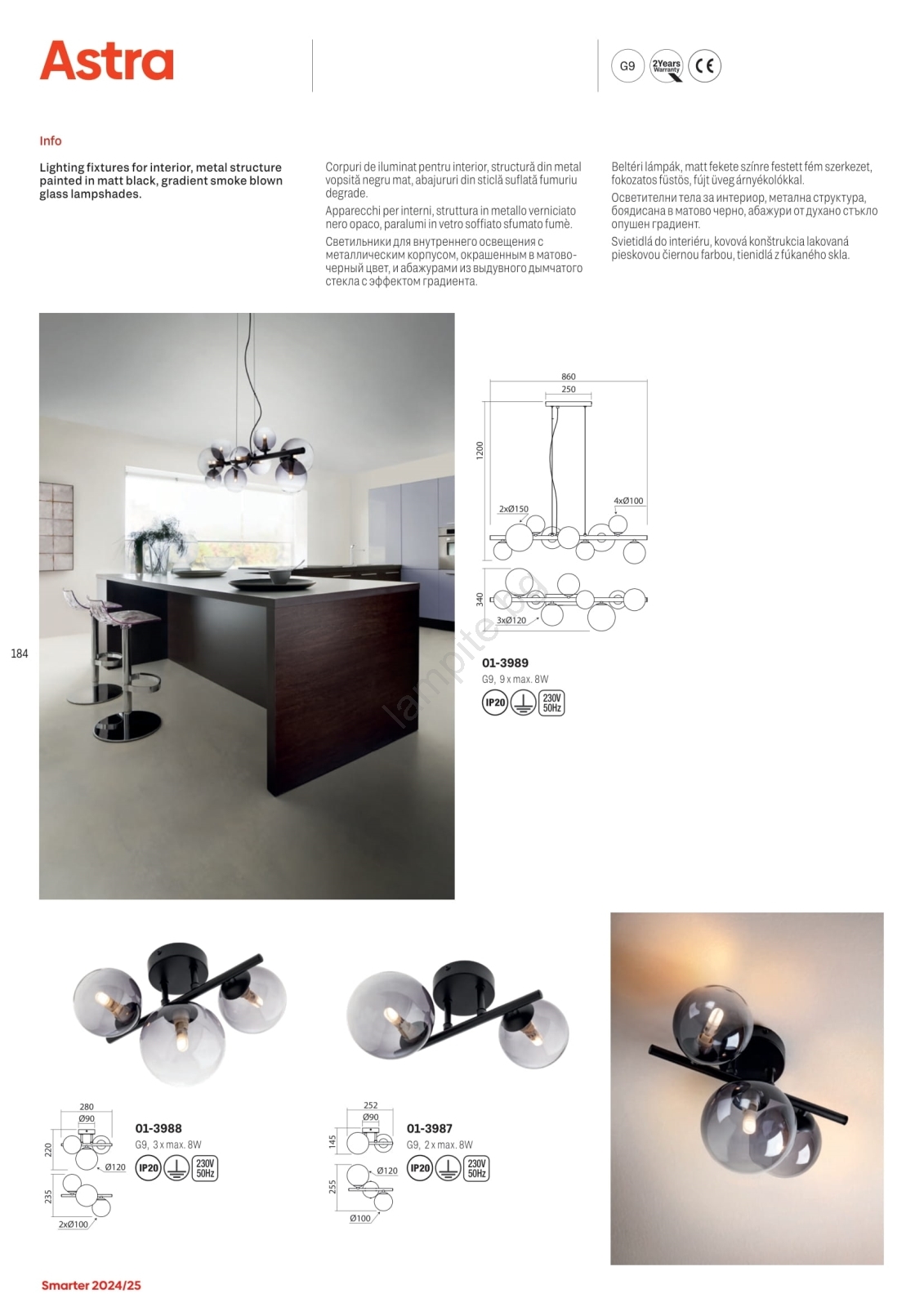 Redo 01-3988 - Полилей за повърхностен монтаж ASTRA 3xG9/8W/230V черен