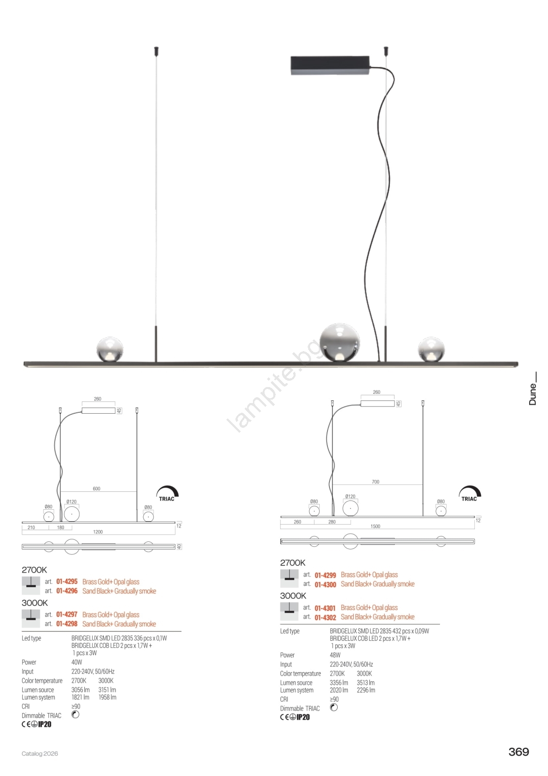 • Redo 01-4301 - LED димируем полилей на кабел DUNE LED/48W/230V 3000K CRI 90 бял/златист