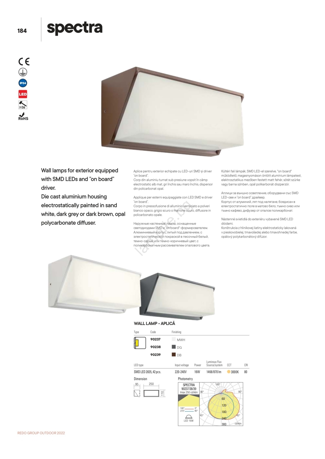 • Redo 90237 - LED Екстериорен аплик SPECTRA LED/16W/230V 3000K IP54 бял