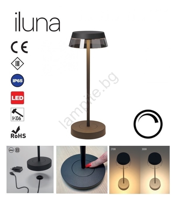 • Redo 90312 - LED регулируема настолна лампа с докосване ILUNA LED/2,5W/5V 2700-3000K 3000 mAh IP65 черна