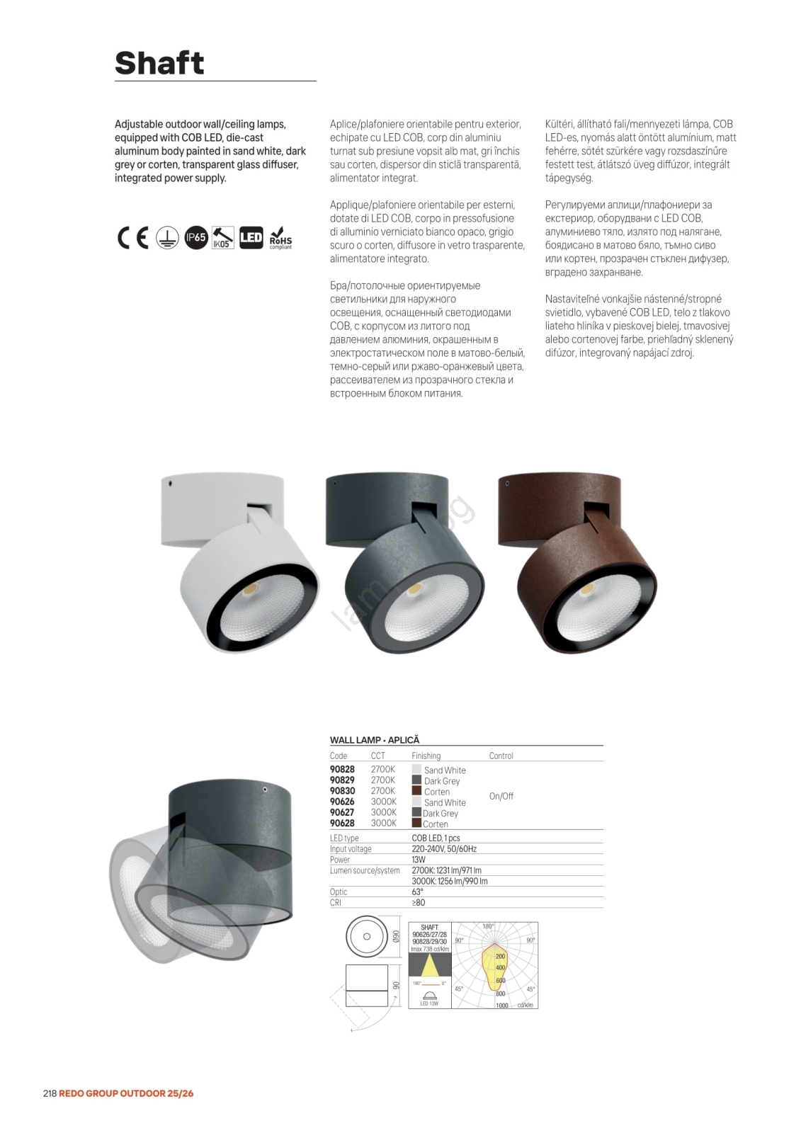 • Redo 90627 - LED външно точково осветително тяло SHAFT LED/13W/230V 3000K Ø 9 см IP65 антрацит