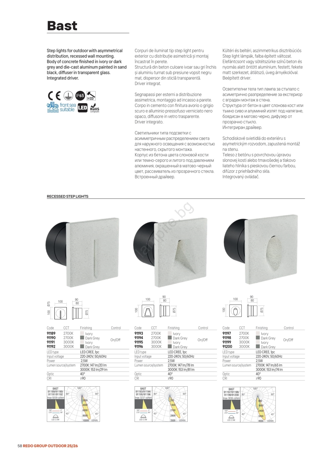 • Redo 91199 - LED външно ориентировъчно осветително тяло BAST LED/2,5W/230V 3000K CRI 90 IP65 сиво