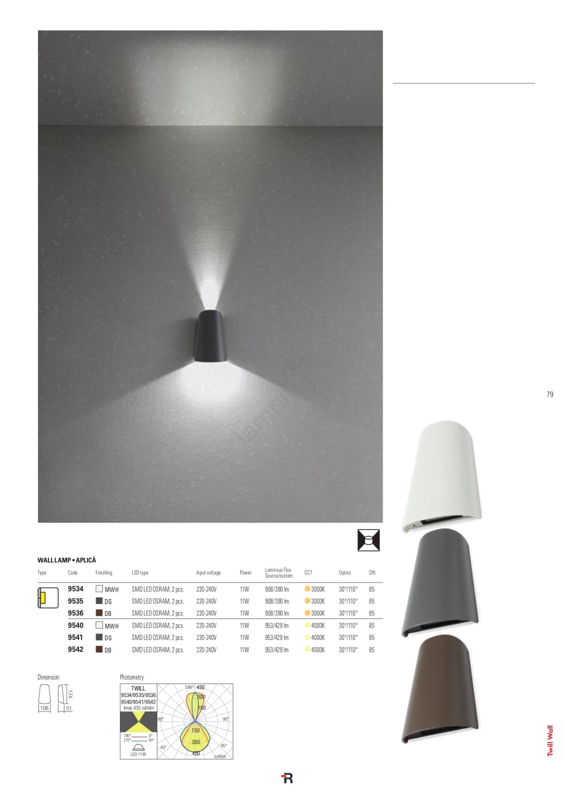 Redo 9536 - LED външен стенен аплик TWILL LED/11W/230V IP65