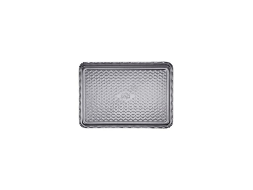 • Правоъгълната тава е изработена от въглеродна стомана, която осигурява оптимален температурен отклик и равномерно разпределение на топлината.