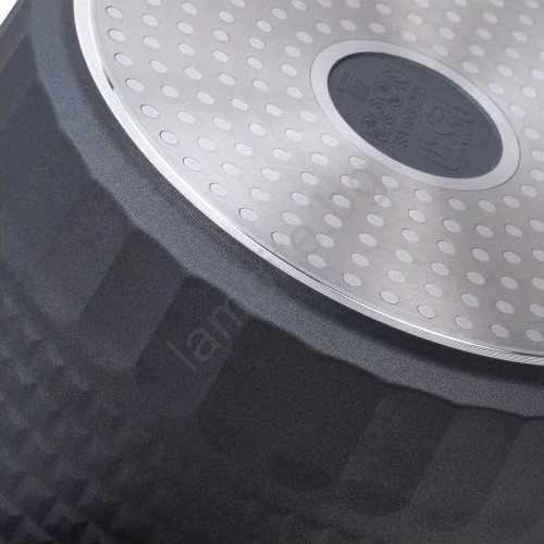 • Диаметър 24 см и вместимост 5,3 литра предлагат идеален обем за приготвяне на ястия за цялото семейство, като леян алуминий гарантира бърз пренос на топлина и стабилна работа на всички видове котлони.