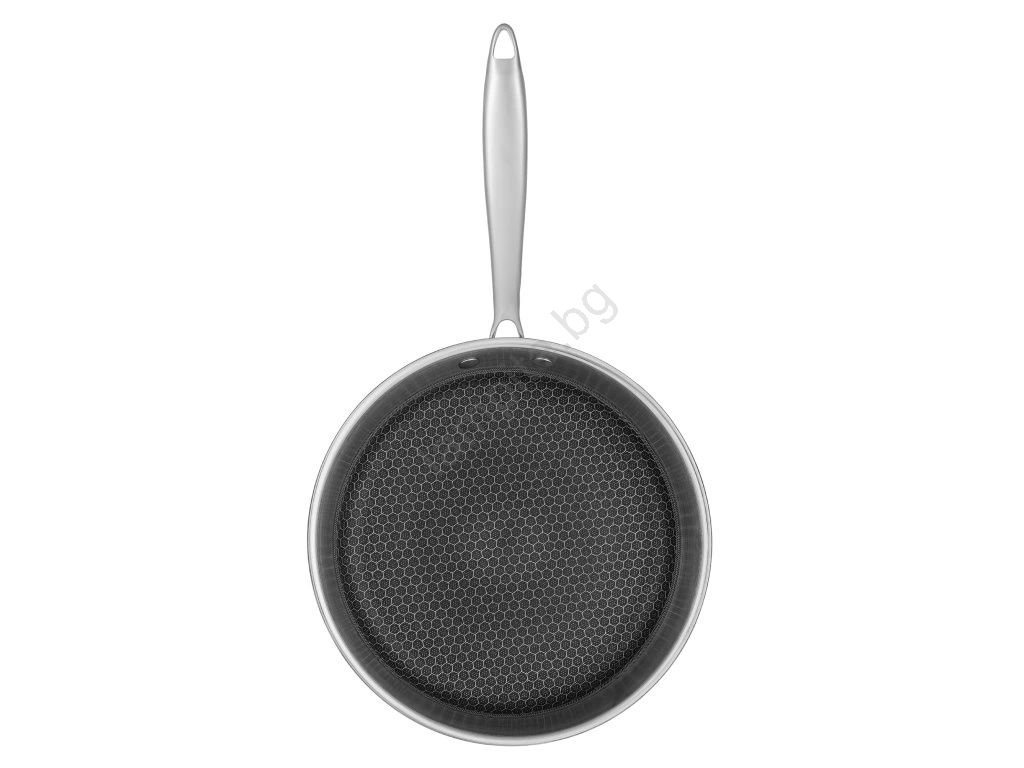 • Вътрешната повърхност е покрита с ефективно незалепващо покритие с уникална шарка „пчелна пита“, което минимизира залепването на храната и значително улеснява почистването.