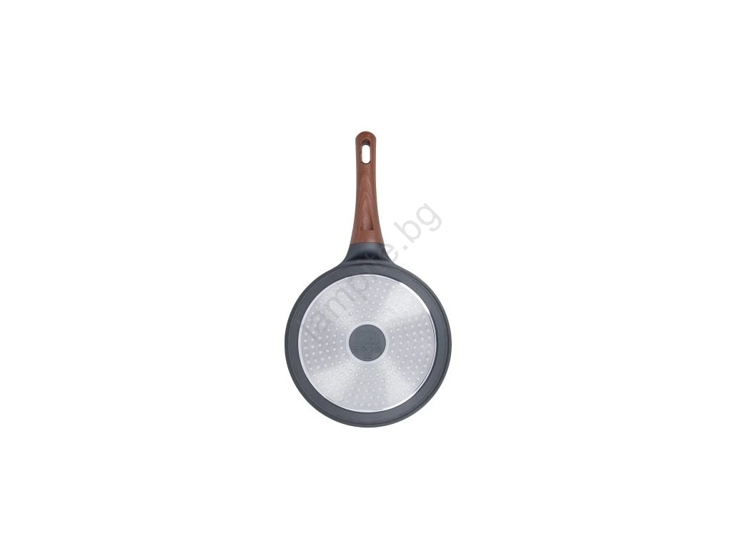 • Ергономична дръжка с Soft-Touch покритие и дървесен декор осигурява удобен захват и увереност при манипулация, а освен това тиганът изглежда стилно.